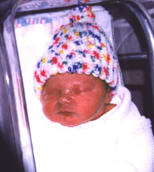 In Emergency, they wheeled Sharon off while Becca and I found our way to Labor & Delivery. It took us about four minutes to find the area. I was beginning to get a little preturbed at the nurse at the Nurse's Station because he was ignoring me because he was on the phone. Then I realized they were talking to our doctor, Dr. Fransden. Then I heard an ear piercing scream in the room behind me and knew it was familiar. By the time Sharon and I got in the room, about 5:39 a.m., Parker was on his way out.