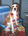 Jasper, Sun WorshipperThis is me at the Buffett Beach Party my parents threw on our deck. 90 degrees of heat, a swimming pool, my own lawn chair to kick back in and Bonz - what more could a dog ask for?