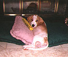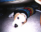 When they let me out, I acted my most adorable and cutest. I even went around the entire store and picked out my toys -- a pig's ear, a bone, a tug rope -- while they talked it over. Then daddy ponied up lots of money and I got into a big car for the ride home. I laid on mommy's lap for the whole trip. I still hate cars.