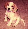 Me at my cute stage.One of my other favorite places to lounge is under the green chairs. Here I am, stretched out, doing what any dog should do. I actually like to lie under lots of things - after all, I'm a Beagle and I'm bred to crawl in little holes after foxes and stuff. At least that's what they tell me I'm supposed to do.