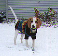 As you can see by the photo, mom and dad decided to put me in a warm coat because I was still kind of mangy and didn't have a lot of fur. It was bad enough in the house to make me want to hide under the chairs - but they actually took me out in public like this.